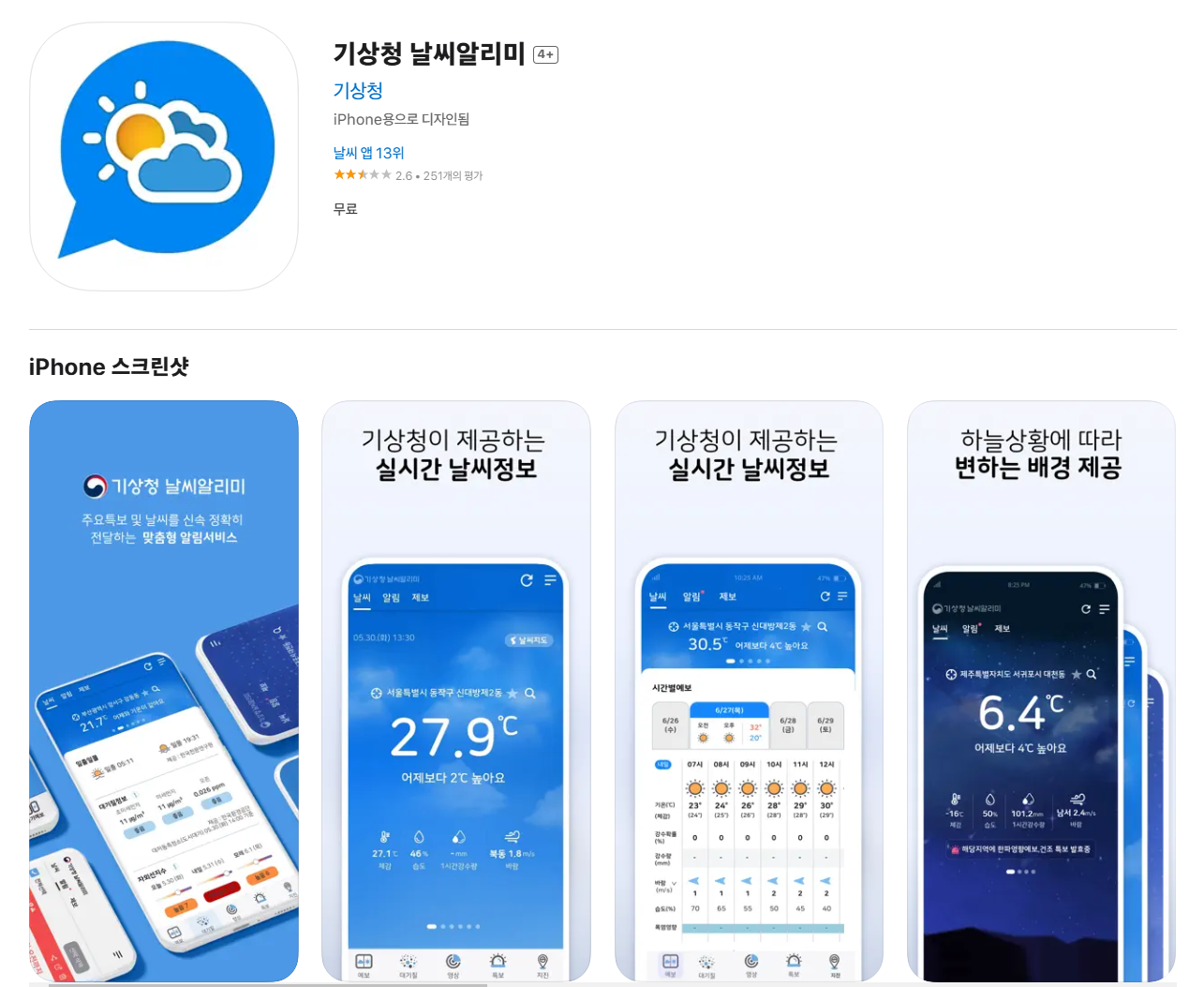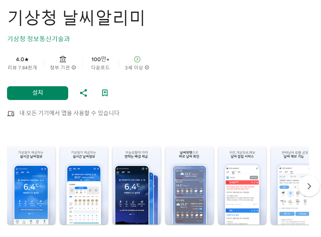 기상청 날씨 알리미 서비스를 아래 버튼을 눌러 다운 받으시면 더 유용하게 이용가능 가능합니다.
